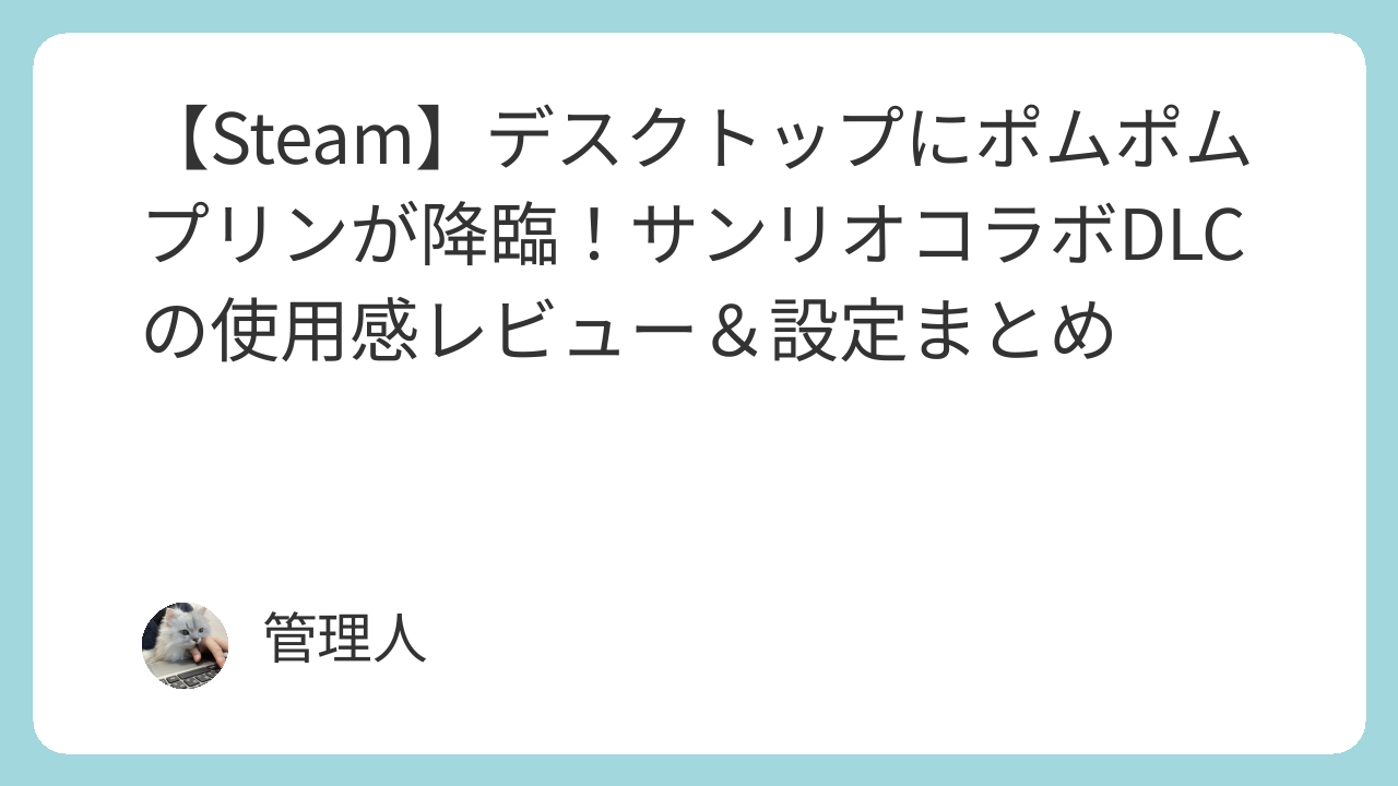 そんな私に、見逃せないニュースが飛び込んできました。 あのSteamで人気のデスクトップアクセサリDesktop Mateに、サンリオキャラクターズのDLC(追加コンテンツ)が登場です!