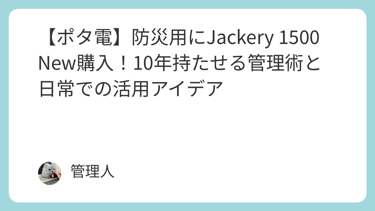 【ポタ電】防災用にJackery 1500 New購入!10年持たせる管理術と日常での活用アイデア