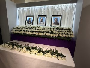 前回同様のお花に加え、今回は芳名帳の案内と、お塩が配布されました。