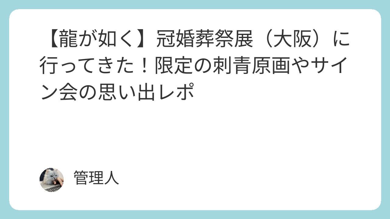 『龍が如く 極3 / 龍が如く3外伝 Dark Ties』の新作発売で、さらに盛り上がりを見せている「龍が如く」シリーズ。今回は、大阪南港 ATC Galleryで開催されたイベント「龍が如く 冠婚葬祭展」大阪初日の様子を詳しくお届けします。すでに発売されていますが、イベント参加時は発売前でしたので、その温度感で書かせてもらいます!